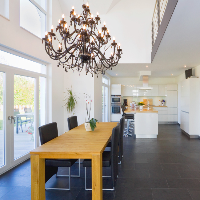Im Erdgeschoss befinden sich die geräumige Wohnküche und ein großzügig gestalteter Eingangs- und Essbereich.